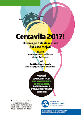 Atenció! Reserveu-vos el diumenge 3 de desembre! Aquest any participem amb més força que mai a la Cercavila! Tenim moltíssimes novetats! Entre elles, a part de la tradicional i energètica xocolatada, una companyia professional de batukaires, la Galeta Percussió, que ens acompanyaran durant tota la rua perquè no perdem el ritme!